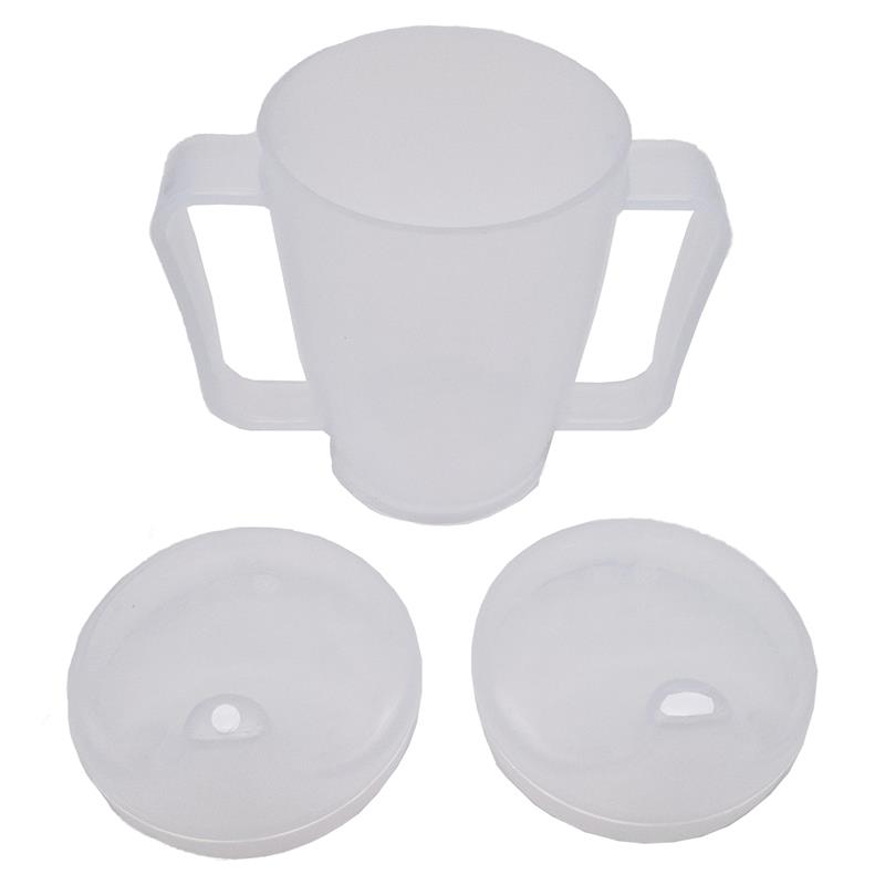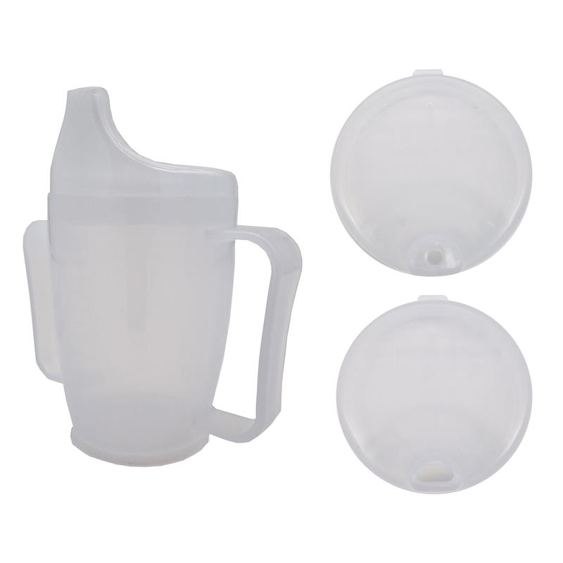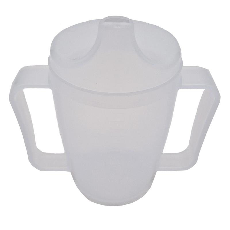 Trinkbecher mit 2 Griffen, 280ml, Doppeldeckel-System für Flüssigkeiten und Brei